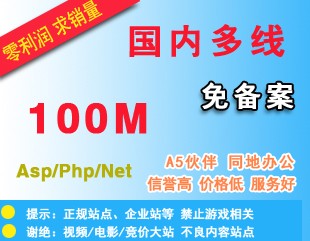 抢新品国内免备案空间100M送数据库支持AspPhpNet不限IIS高速稳