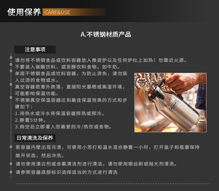 Stanley保温杯男水杯女便携学生杯子304不锈钢真空茶杯